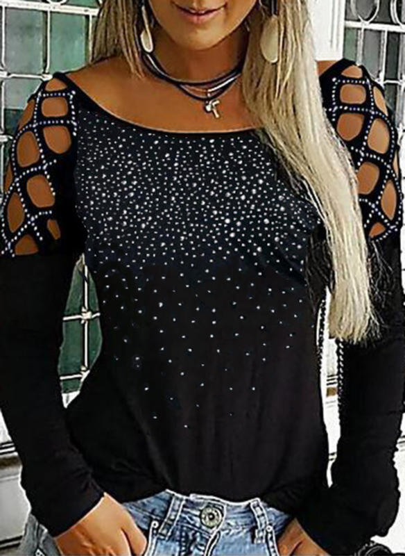 Bluzka z długim rękawem dopasowana z odkrytymi ramionami