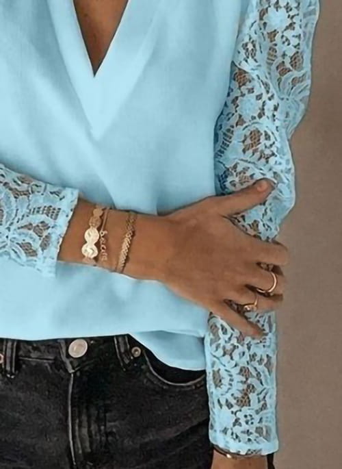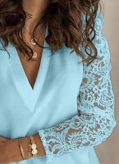 Bluzka długi rękaw koronka dekolt v elegancka jednolita casual na co dzień Zennur