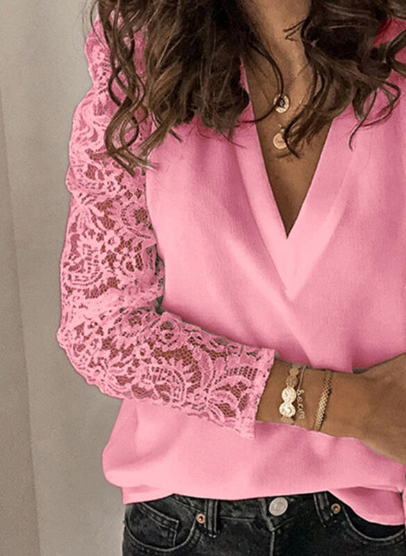 Bluzka długi rękaw koronka dekolt v elegancka jednolita casual na co dzień Zennur