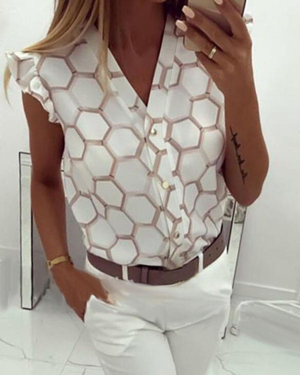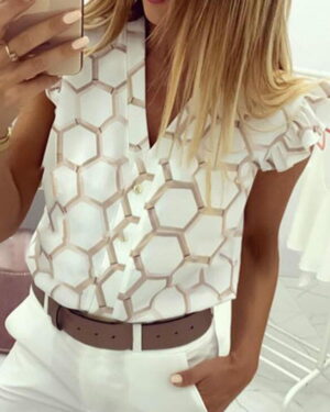Bluzka koszulowa z krótkim rękawem zakończonym falbaną