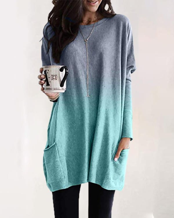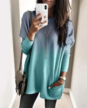 Bluzka z długim rękawem o fasonie oversize i kieszeniami