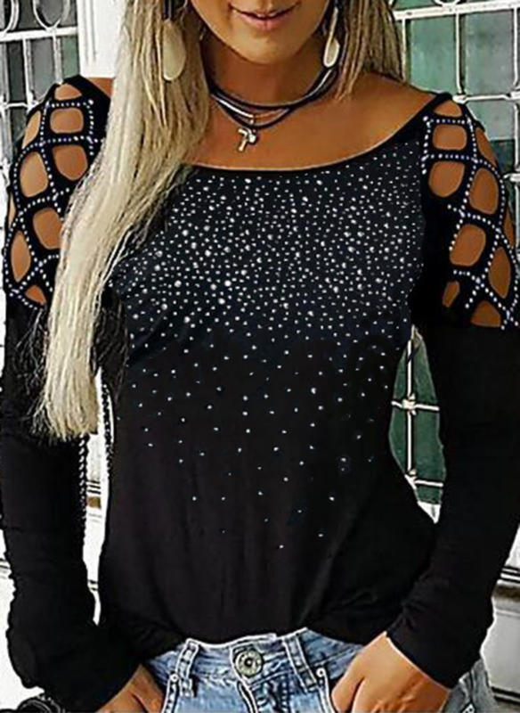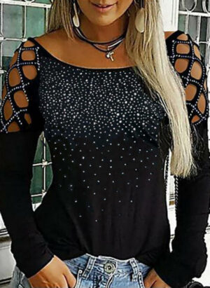 Bluzka z dużym dekoltem i ażurowymi rękawami