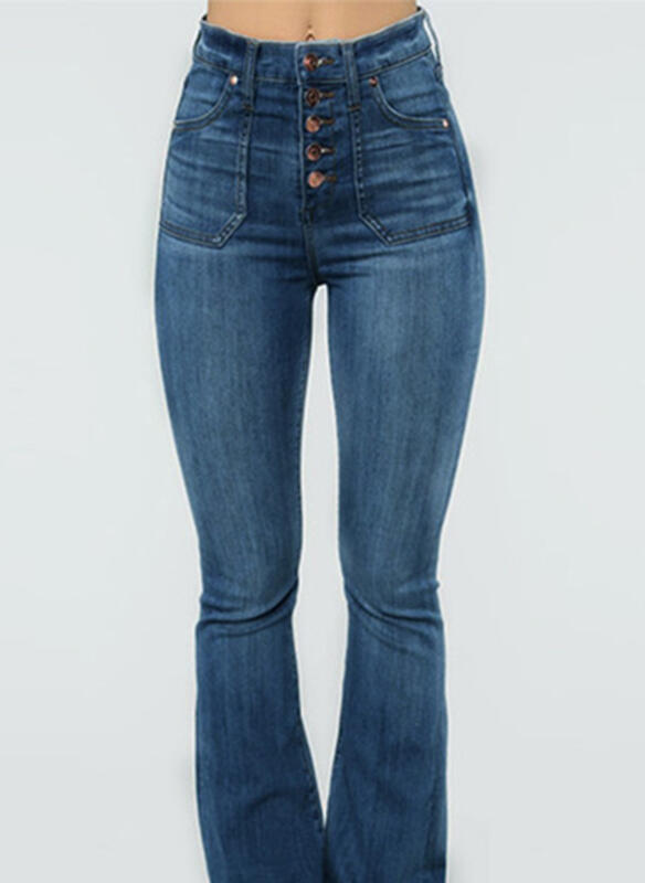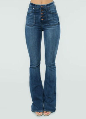 Jeansy długa nogawka luźne dzwony szerokie jednolite bez wzoru wysoki stan casual Riho