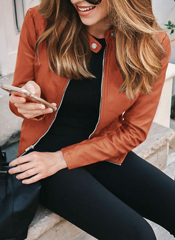 Kurtka ramoneska długi rękaw rozpinana stójka skóra skórzana ekologiczna taliowana talia prosta jesień ramoneska Katlynn