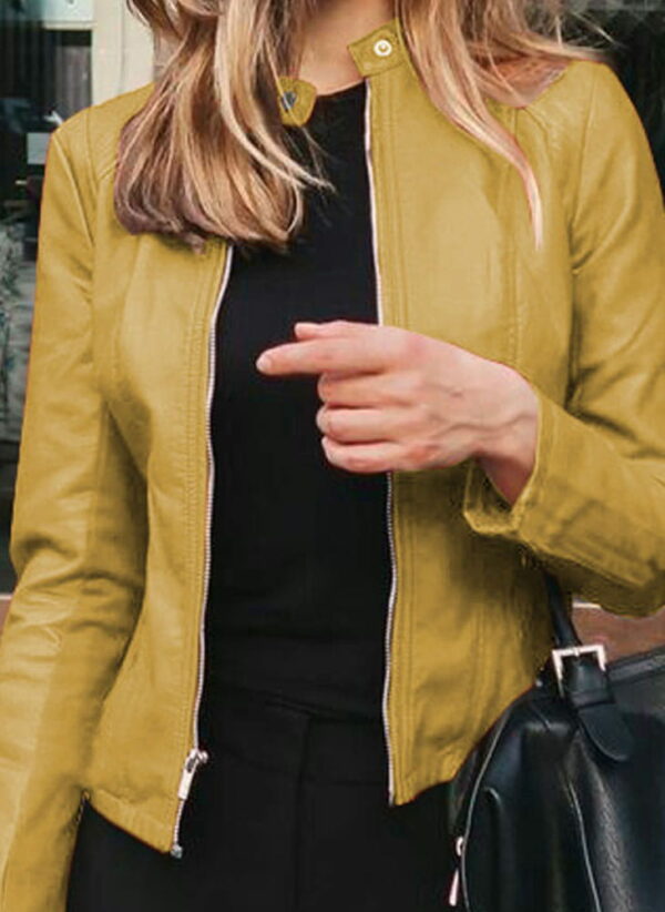 Elegancka kurtka ze skóry ekologicznej idealnie sprawdzi się jesienią. Długi rękaw, rozpinany kołnierz typu stójka i prosty fason podkreślą twój styl. Kurtka sięga do pasa, gdzie znajduje się szeroki pasek ze skóry. Ten model od Katlynn to połączenie ponadczasowego stylu z dbałością o środowisko. Kurtka jest wykonana w 100% z ekologicznej skóry, dzięki czemu możesz czuć się stylowo i jednocześnie pozytywnie wpływać na planetę. Prosta, ale efektowna kurtka będzie idealnym dopełnieniem twojej jesiennej garderoby. Ten model to ponadczasowy klasyk, który nigdy nie wyjdzie z mody. Od teraz twoim ulubionym okryciem będzie ta ekologiczna kurtka od Katlynn.