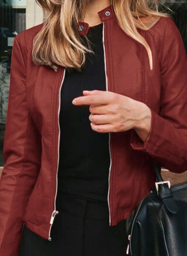 Elegancka kurtka ze skóry ekologicznej idealnie sprawdzi się jesienią. Długi rękaw, rozpinany kołnierz typu stójka i prosty fason podkreślą twój styl. Kurtka sięga do pasa, gdzie znajduje się szeroki pasek ze skóry. Ten model od Katlynn to połączenie ponadczasowego stylu z dbałością o środowisko. Kurtka jest wykonana w 100% z ekologicznej skóry, dzięki czemu możesz czuć się stylowo i jednocześnie pozytywnie wpływać na planetę. Prosta, ale efektowna kurtka będzie idealnym dopełnieniem twojej jesiennej garderoby. Ten model to ponadczasowy klasyk, który nigdy nie wyjdzie z mody. Od teraz twoim ulubionym okryciem będzie ta ekologiczna kurtka od Katlynn.