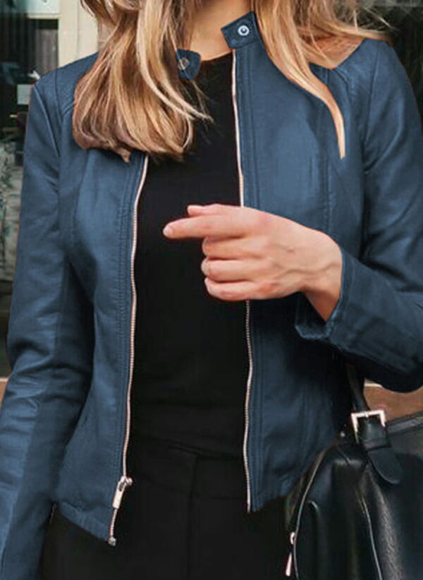 Kurtka ramoneska długi rękaw rozpinana stójka skóra skórzana ekologiczna taliowana talia prosta jesień ramoneska Katlynn