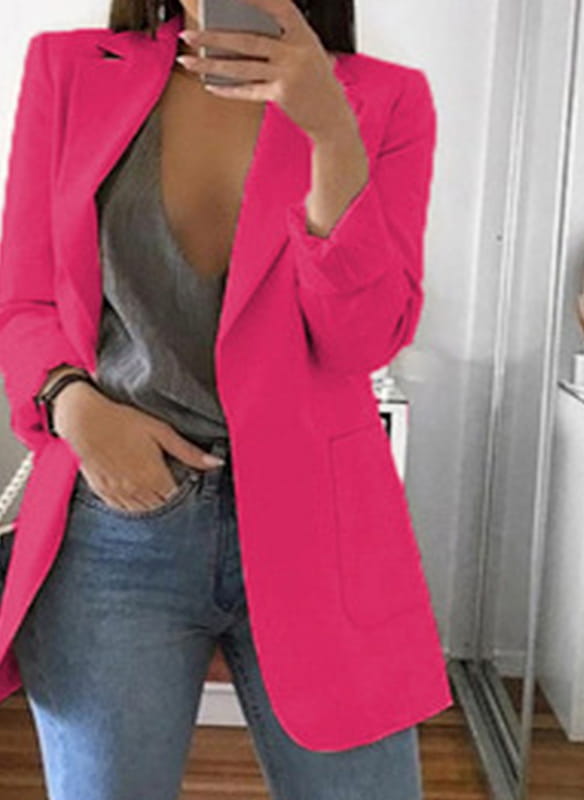 Marynarka długi rękaw jednolita klapy kieszenie elegancka do pracy bez wzoru Carla