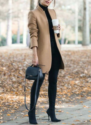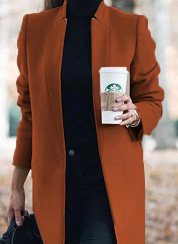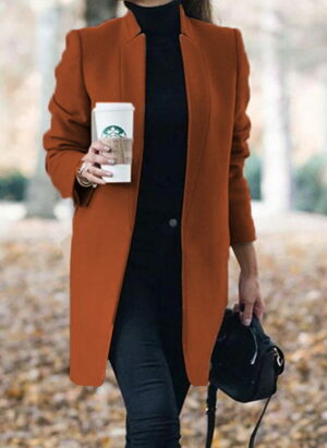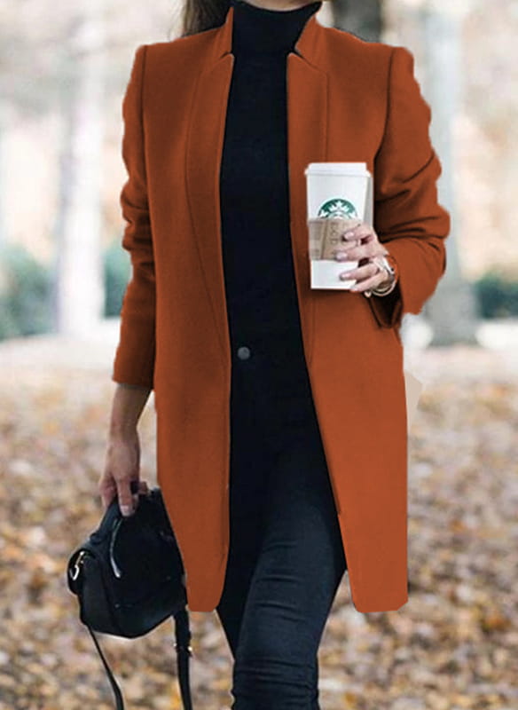 Płaszcz długi rękaw zapinany na guziki jednorzędowy jednolity bez wzoru jesień Jurendine