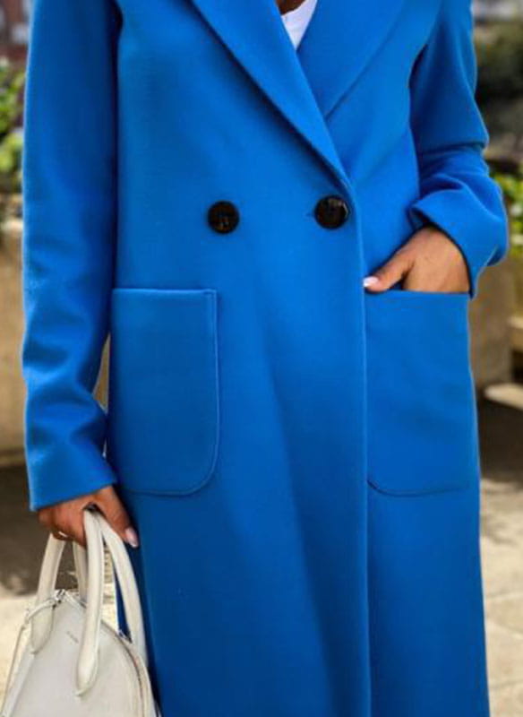 Płaszcz długi rękaw zapinany na guziki jednorzędowy jednolity kieszenie klapy elegancki bez wzoru jesień Jabine