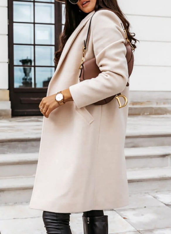 Płaszcz solidny nieformalny długi z kieszeniami zapinany na guziki Dany