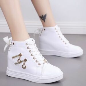 Sneakersy na koturnie sznurowane z modnymi zamkami