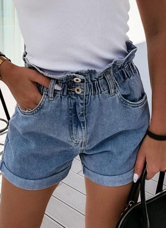 Te szorty to prawdziwa perełka. Podkreślające kształty, sięgające talii spodenki z falbanami idealnie podkreślą Twoją figurę i doda Ci pewności siebie. Wykonane z najwyższej jakości bawełny i denimu sprawią, że poczujesz się komfortowo przez cały dzień. Klasyczny krój z delikatnymi falbanami sprawia, że szorty świetnie sprawdzą się zarówno na co dzień jak i na wieczorne wyjścia. Dzięki wysokiemu stanowi i dopasowanym udom idealnie podkreślą Twoje atuty, a jednocześnie zachowają swobodę ruchów. Te niebanalne spodenki to must have każdej kobiecie, która ceni sobie oryginalny styl i wygodę.