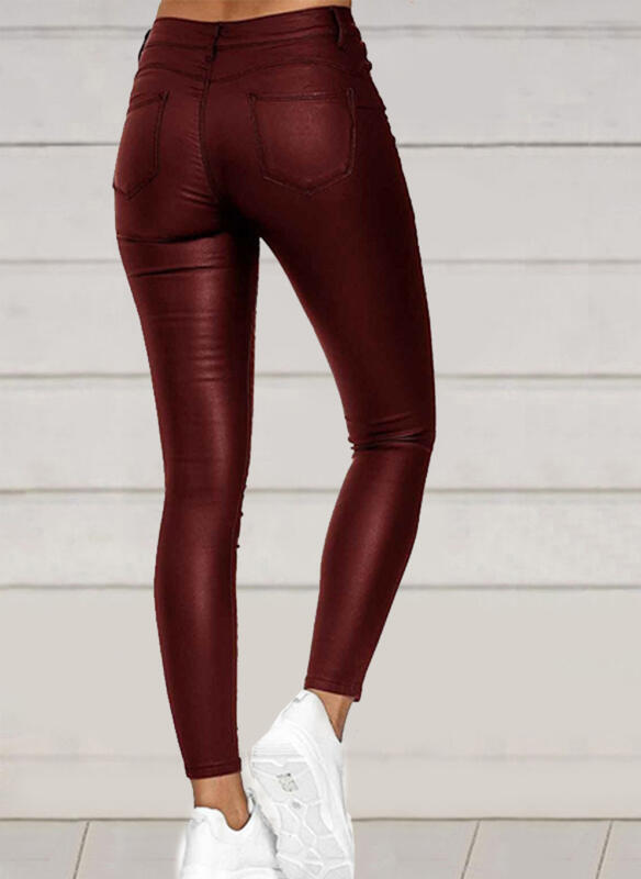 Spodnie długa nogawka obcisłe wysoki stan zapianane ściągacz eleganckie skórzane casual Hendrike