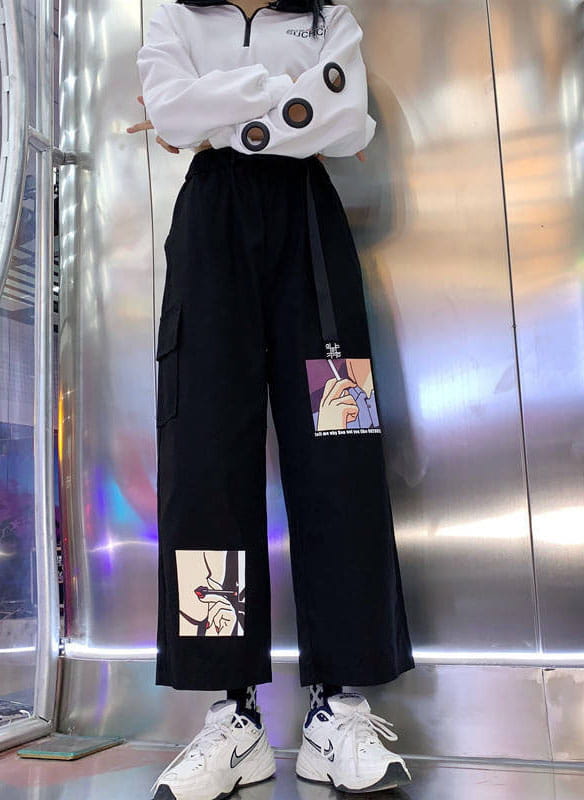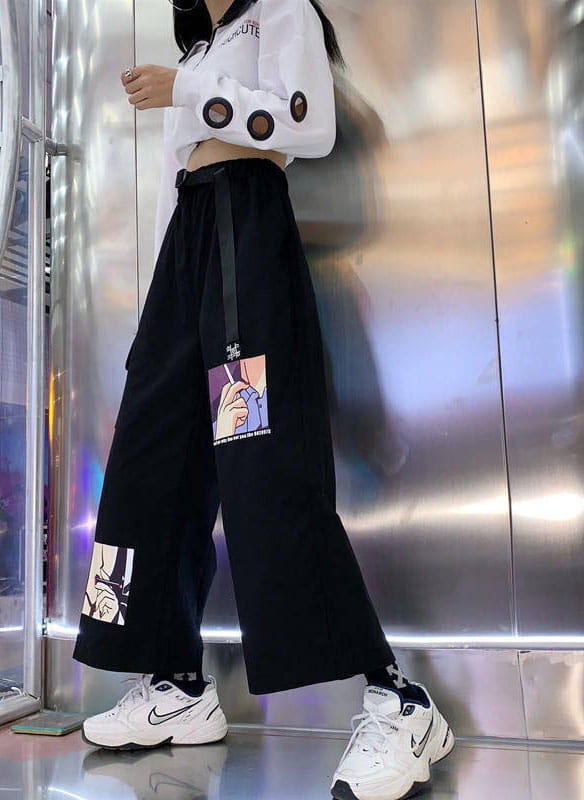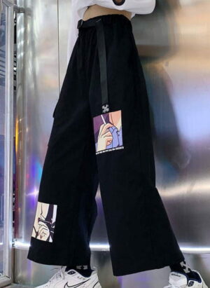 Spodnie szerokie z kreskówkową grafiką