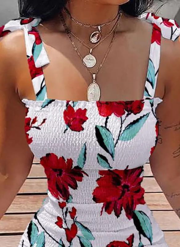 Sukienka damska przyległa letnia na ramiączkach wiązanych prosty dekolt dopasowana krótka mini JoAnne