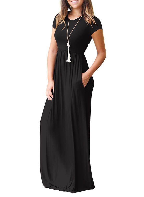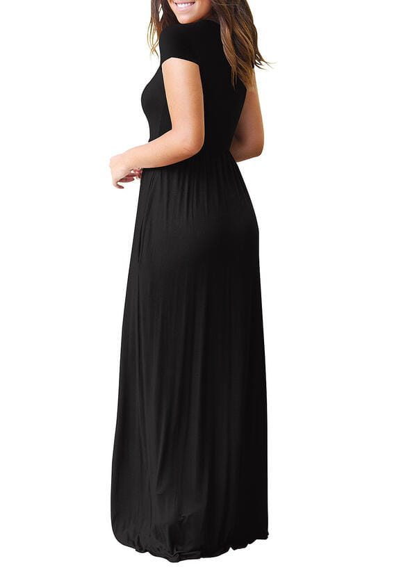 Sukienka długa do ziemi maxi dekolt prosty krótki rękaw luźna jednolita kieszenie lato casual na plażę Elsje