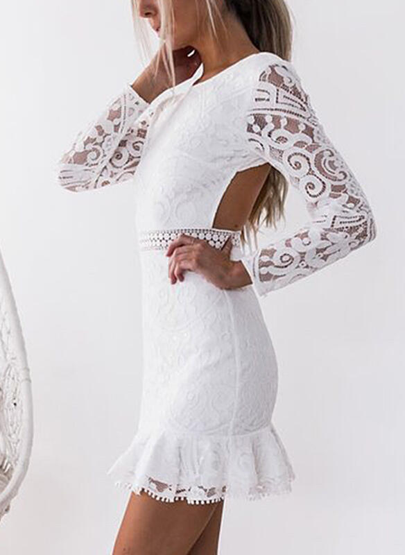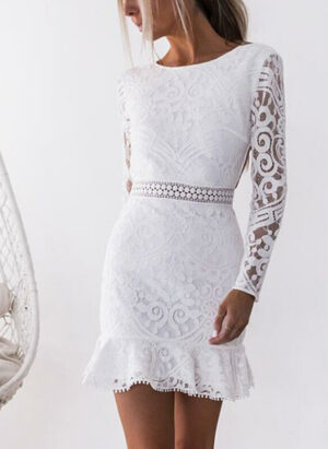 Sukienka długi rękaw dekolt okrągły mini przed kolano koronka falbany na co dzień do pracy impreza Delilah