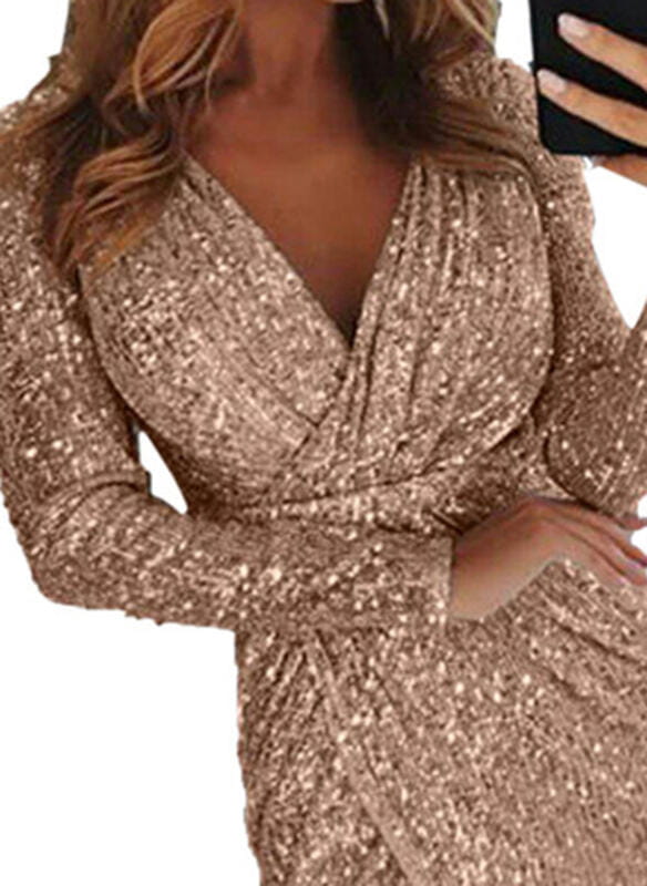 Ta sukienka to idealny wybór na sylwestrową noc! Długie rękawy i eleganckie wykończenie V-neckline dodają nutkę klasyki, podczas gdy błyszczące, srebrne paillety rozświetlają każdy Twój ruch. Rozcięcie na nodze sięgające ziemi umożliwia swobodne kroki, a jednocześnie podkreśla figurę. Ta sukienka z długim rękawem i rozcięciem do samej ziemi w stylu kopertowym pokryta jest migoczącym brokatem, dzięki czemu będziesz lśnić jak gwiazda filmowa na imprezie sylwestrowej. Zakładając tę sukienkę Tulia na wieczór sylwestrowy, na pewno zostaniesz królową parkietu.