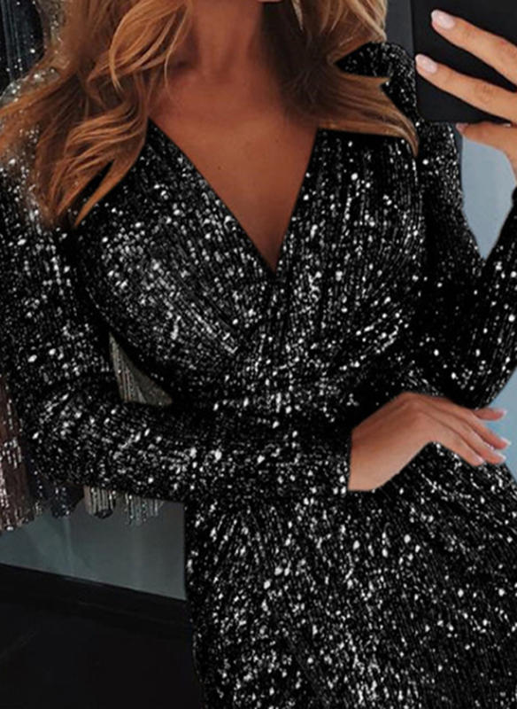 Ta sukienka jest doskonała na Sylwestra lub ślub. Długie rękawy i szczelina pozwolą ci cieszyć się wieczorem bez obaw, a głęboki dekolt i falbany zapewnią romantyczny nastrój. Błyszczące sekwinsy rozjaśnią każde pomieszczenie, a luźny krój zapewni komfort. Przyciągnij uwagę w tej wyjątkowej sukience od Ildi.