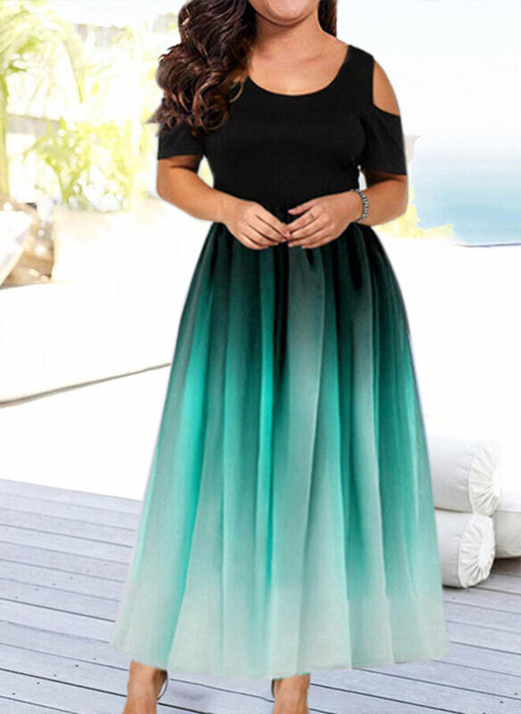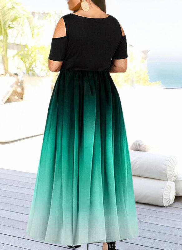 Sukienka krótki rękaw dekolt v do ziemi maxi długa plisy ombre casual odkryte ramiona elegancka Dorrit