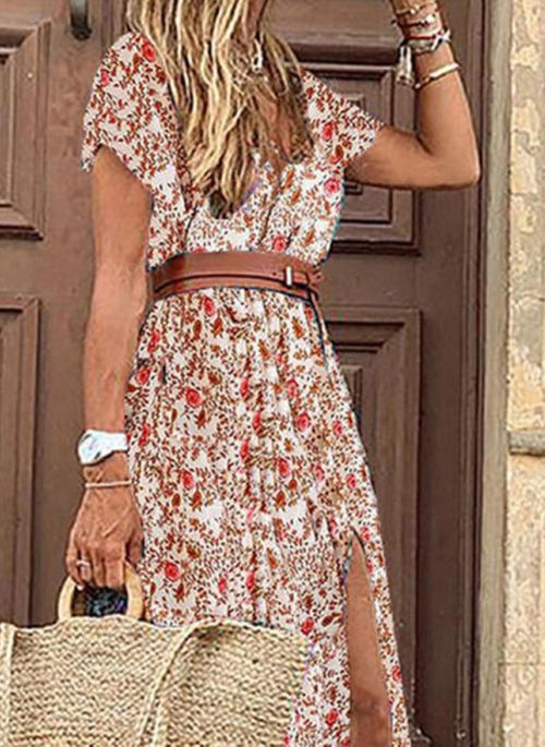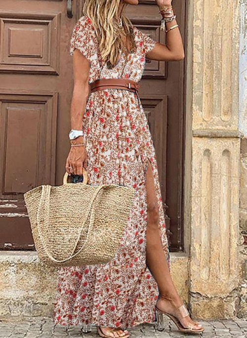 Sukienka maxi w stylu boho z trójkątnym dekoltem