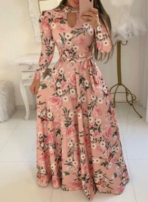 Sukienka maxi z długim rękawem i wycięciem Hagar