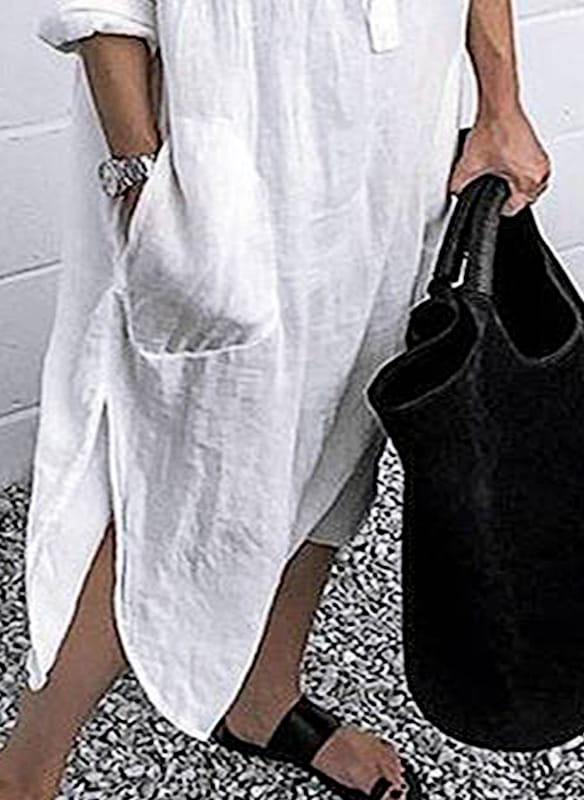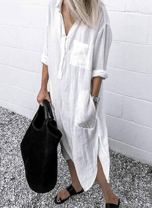 • Sukienka maxi z rozporkiem na przodzie i fantazyjnymi rękawami