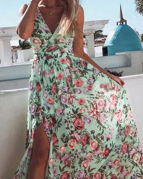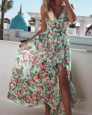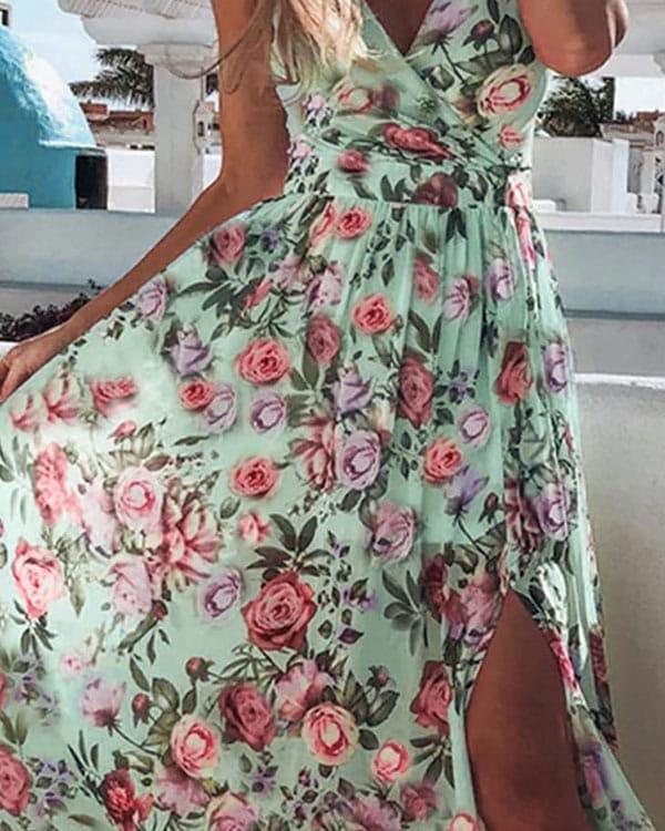 Sukienka maxi z rozporkiem na szerokich ramiączkach z dekoltem V-neck