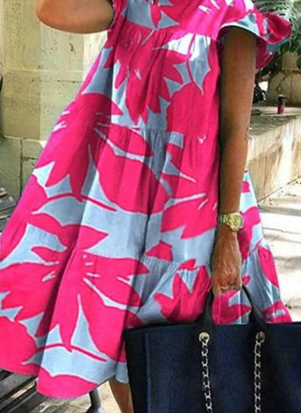 Zakochaj się w tej uroczej sukience na lato! Ta midi sukienka o prostym kroju z zabawnym dekoltem za kolanami i bufiastymi rękawami typu babydoll to idealna mieszanka romantycznego stylu i wygody. Wykonana z delikatnego, przewiewnego materiału w kwiatowy wzór, ta luźna sukienka sprawi, że poczujesz się jak bohaterka starego filmu. Zgrabnie podkreślając talię, a następnie swobodnie spływając w dół, ta sukienka z nutką nostalgii pozwoli ci cieszyć się letnim dniem w najlepsze. Z marszczeniami, falbanami i zabawnymi szczegółami, które zachwycają oko, ta urokliwa sukienka to must have tego lata! Pozwól, by zawróciła głowy wszystkim na swojej drodze.