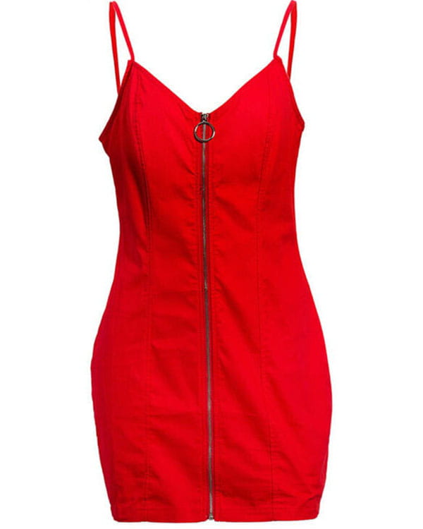 Sukienka mini na cienkich ramiączkach z zamkiem błyskawicznym