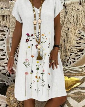 • Sukienka mini za kolano krótka krótki rękaw dekolt prosty guziki falbany boho lato tunika Francia