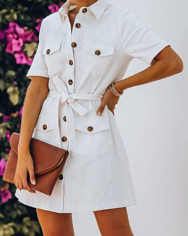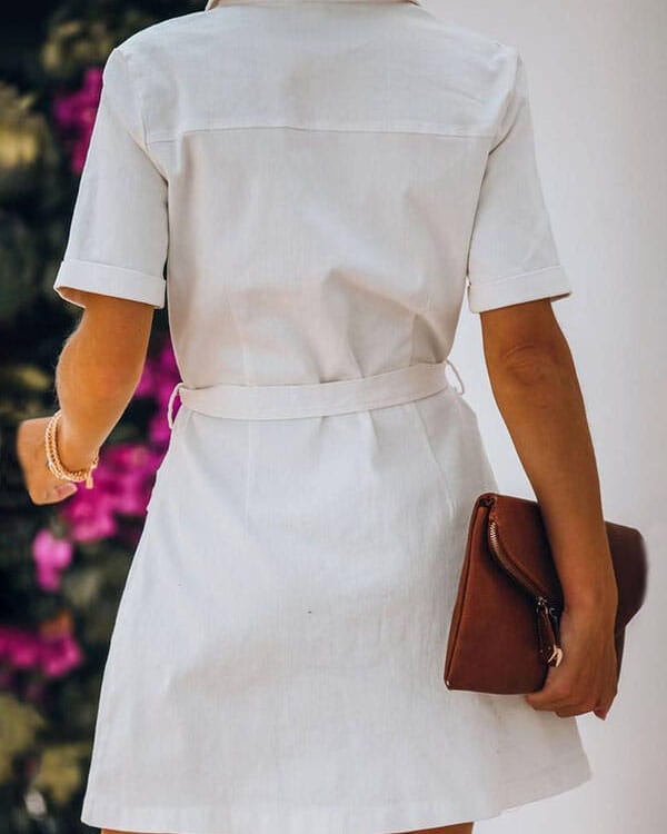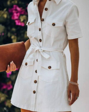 • Sukienka mini z długim rękawem na guziki i kołnierzem