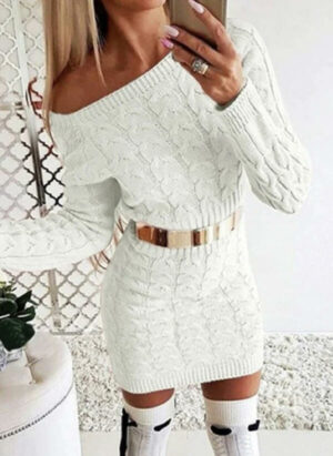 • Sukienka mini z długim rękawem z guzikami przy dekolcie