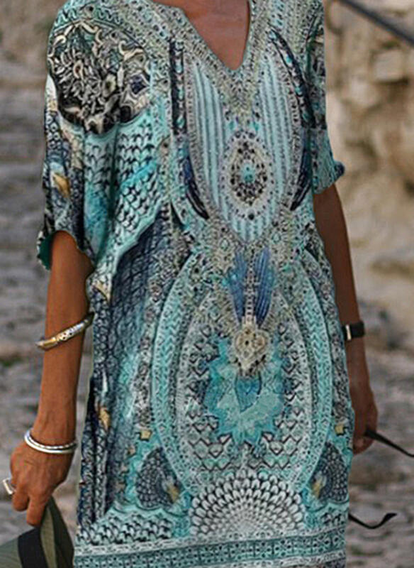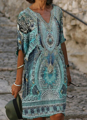 • Sukienka mini przed kolano krótka jednolita dekolt v guziki rozpinana kieszenie krótki rękaw jeans tunika Vally