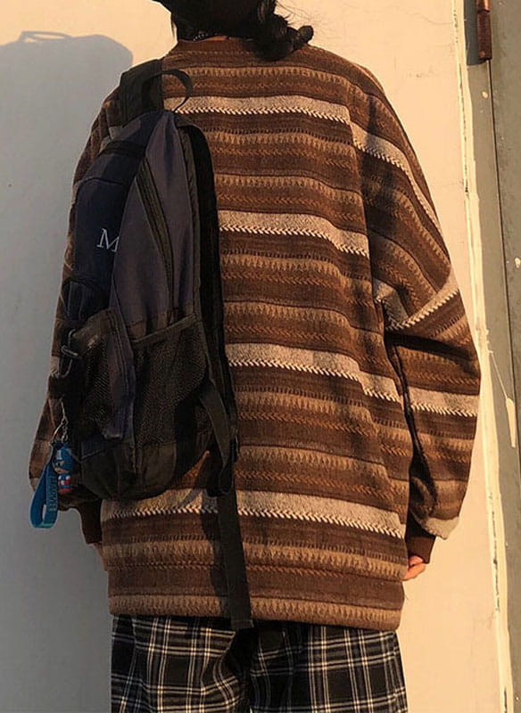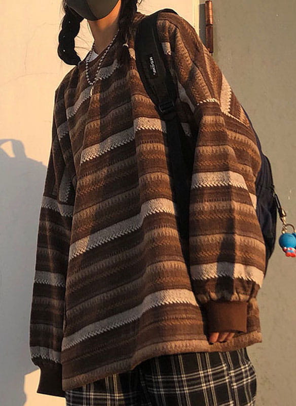 • Sweter długi rękaw dekolt v kaptur pasy wzór wycięcia luźny casual na co dzień Ladeana